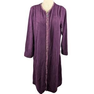 Miss Elaine Robe Zipper Purple Plum Size L Fleece Pockets Long Sleeve