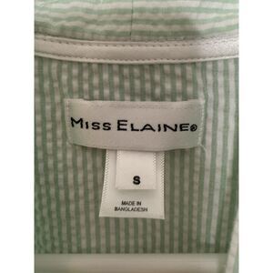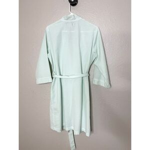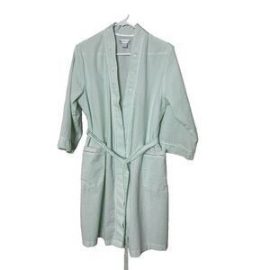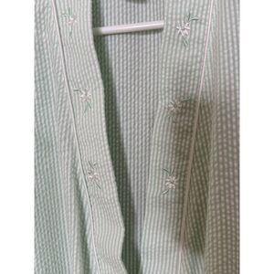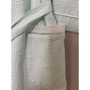 Miss Elaine Seersucker S White Eyelet Lace Green Robe Kimono Tie Front Stripe
