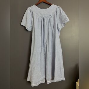 Miss Elaine Seersucker Short Midi Robe Navy Blue White Check Size 2X NEW $54