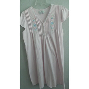 Miss Elaine Short Cotton Nightgown Pink Floral Embroidered Pleated Soft Size L