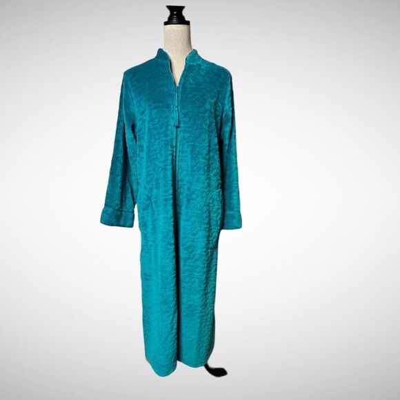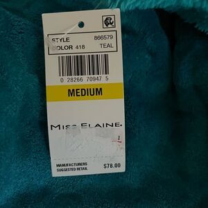 Miss Elaine Soft Cozy Teal Front Zip Long Fleece Rope Size Medium New with Tags