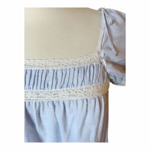 Miss Elaine VTG 80s Polka Dot Cotton Blend Long Nightgown Sz S Puff Sleeve Lace