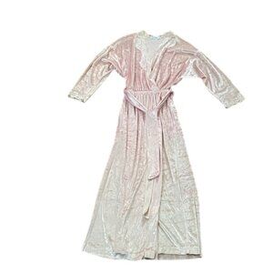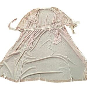 Miss Elaine Vintage 1980s Pink Velvet Like Long Robe Womens Petite USA Lace
