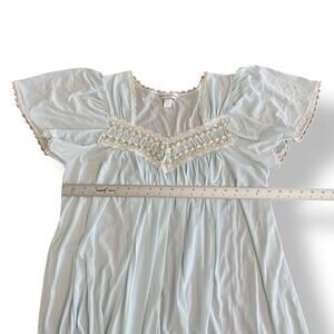Miss Elaine Vintage Light Blue Classic Nylon Flutter Sleeve Nightgown Size Large, embroidered, rosette detail