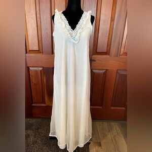 Miss Elaine White Nylon Lace Chiffon Peignoir Gown & Robe Set S/M Gold Label