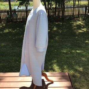 In the gentle embrace of a sunny afternoon, this Miss Elaine robe invites relaxation. Its seersucker fabric whispers tales of comfort and ease. With its soothing blue hue and graceful design, this robe becomes a sanctuary, enveloping you in a tranquil retreat. A timeless piece for serene moments.