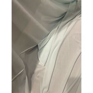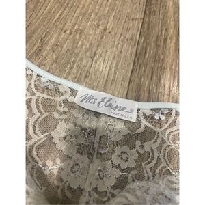 So lovely! Lacey at top, pockets, and buttons. Super sheer and soft. Please note a couple brown spots on the tie.