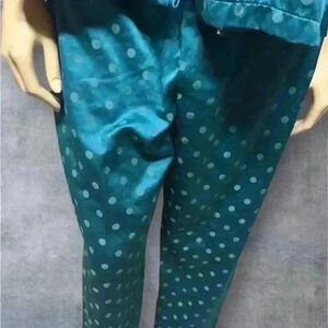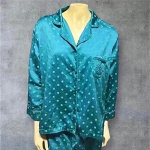 Satin Pajama Set - This classic, satin pajama set features a button-up top and elastic waist pants perfect for a comfortable night of sleep.