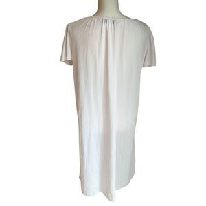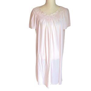 NYLON TRICOT NIGHTGOWN: A classic choice, our nylon tricot, short gown is a timeless beauty. Trimmed with petal embroidery at the round neck and featuring short, flutter sleeves, this gown would make anyone feel special.