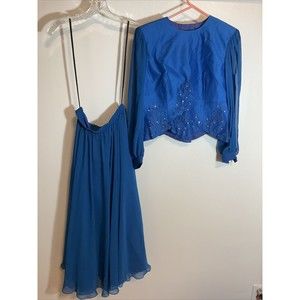 Miss Elliette Women’s 8 Blue Skirt Blazer Combo Vintage Ruffle Evening Swing