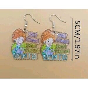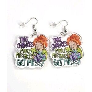 Miss Frizzle Magic School Bus Take Chances Get Messy Acrylic Dangle Drop Earring