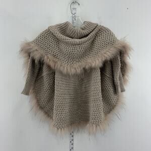 Miss Grant Wool Knit Faux Fur Trim Cape, Tan, Preowned, Girls Eur Size 32