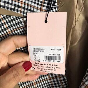 Miss Guided Brown Checkered Long Coat Size 10