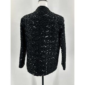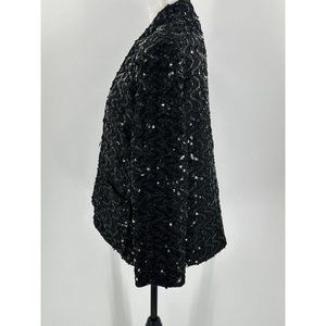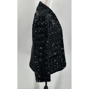 Miss H Jacket Blazer Black Sequins Long Sleeve Open Front Holiday Lined Medium
