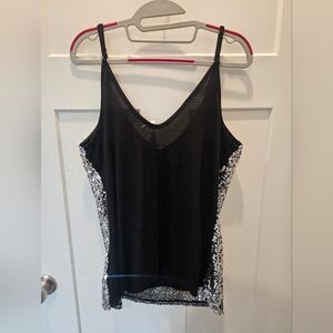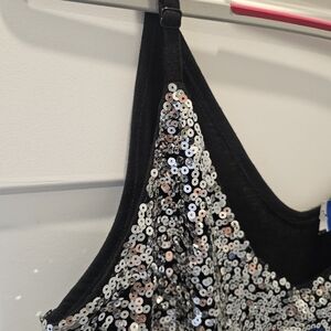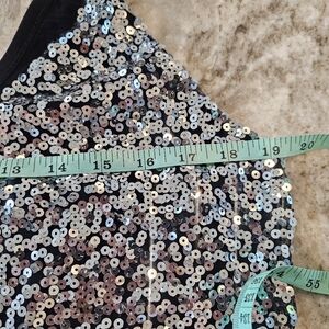 Shine bright with this bold and sassy “Miss Independent” tank top! Covered in sparkling silver sequins with red, white, and blue lettering on the front, this top is perfect for patriotic holidays, parties, or festivals. The lightweight black mesh back adds breathability and edge. Size XXL (19). Gently worn and in excellent condition.
