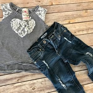 Miss DISTRESSED Jeans (4t) and Jenna & Jessie vintage style lace, navy & white striped top
