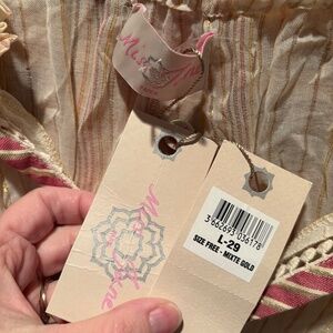 Miss June Boho Peasant Top in Cream with Gold Large NWT