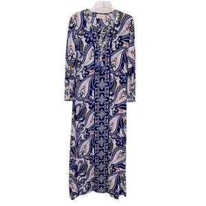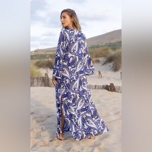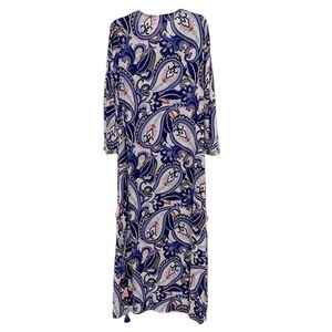 Miss June Paris Boho Maxi Dress Coverup - One Size Resort Beachwear Blue Paisley
