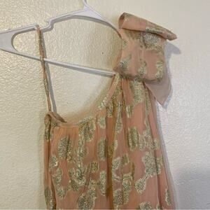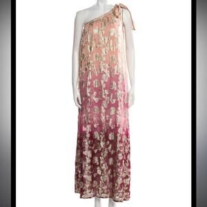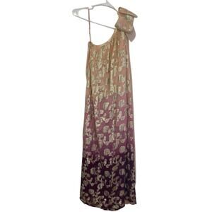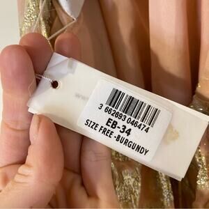 Miss June Paris Burgundy One Shoulder Metallic Gold Maxi Dress Bohemian Bow Tie Free Size