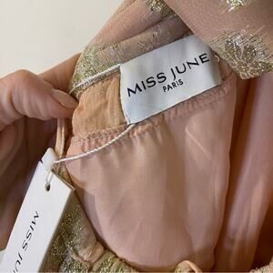 Miss June Paris Burgundy One Shoulder Metallic Gold Maxi Dress Bohemian Bow