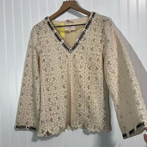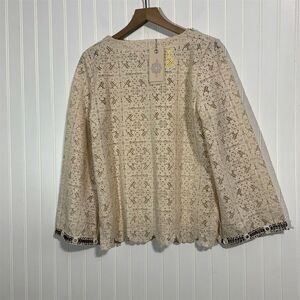 Miss June Paris Crochet Lace Top Beaded NWT S/M Cream Boho Festival Embellished