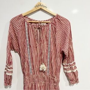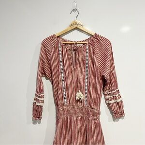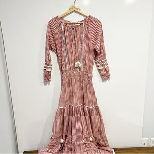 Miss June Paris Long Sleeve Red Stripe Boho Maxi Dress