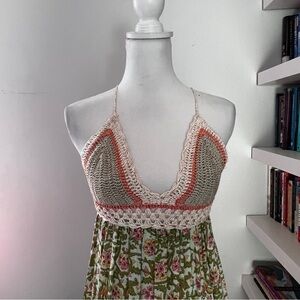 Miss June Paris Mencia Maxi Dress. Size OS S/M Tropical Floral Halter Tie