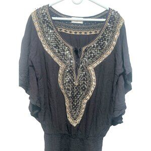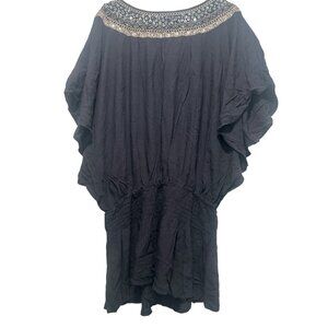 Miss June Paris Black Embellished Rayon Dress Boho Style Size Small Chest 27" Waist 15" Length 36"