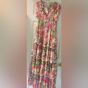 Miss June Paris maxi floral flowy feminine fairy boho flowy Dress small chic