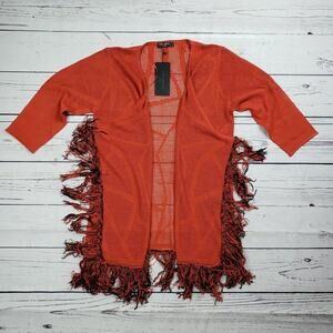 Miss Kelly 1999 Loose Knit Open Front Fringe Cardigan Sweater Women's Size Small