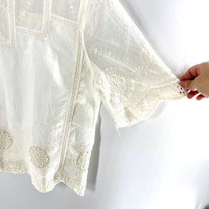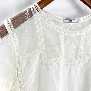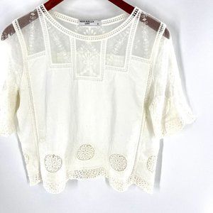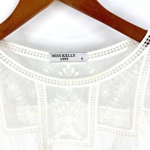Miss Kelly 1999, Small, Women's, Ladies, Juniors, Teens, Blouse, Top, Crochet, Lace, Sheer, Embroidery, Eyelet, Medallion, Short Sleeve, Boho