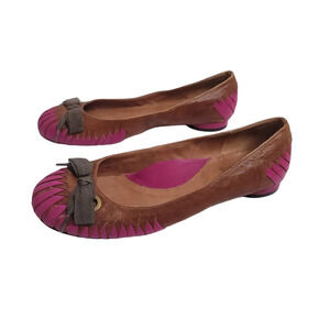 Miss L Fire Leather Ballet Flat Brown/Fuchsia Perfect Women's Shoes EU 41/ US 10