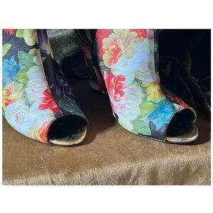 Miss L Victorian Floral Peep Toe Wedges