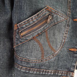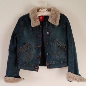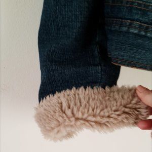 Super Cute Miss Lili Puffy Jean Jacket Size S/M with furry accent detail in neckline and wrist, also super nice pockets. Inside extra coated to protect from the cold weather .