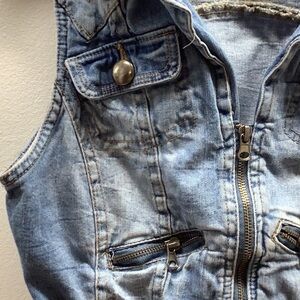 Miss Lili Size Small Crop Sleeveless Blue Denim Vest Preloved