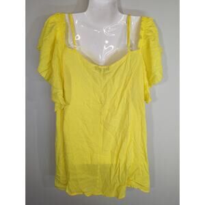 Miss Lili Yellow Embroidered Cold Shoulder Top - Size 2X - Flowy Beach Vibrant