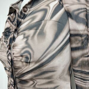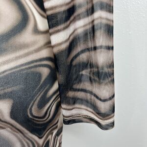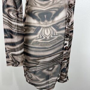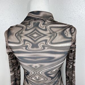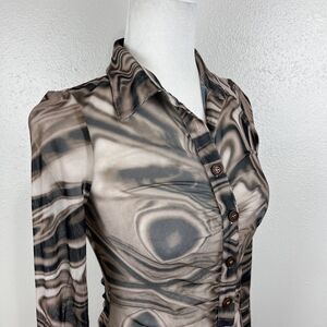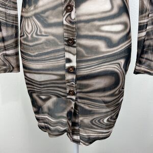 Miss Lola Dress Women Small Brown Retro Mesh Long Sleeve Button Up Casual Mini