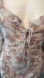 Chic floral dress with long sleeves. Features ruched front and ruffle trim. Ideal for elegant occasions. Back hidden zipper. #1404