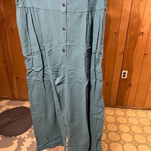 Miss Look XL womens blue button short sleeve pants romper! Barley worn. Sleeeves button up. Needs ironed!