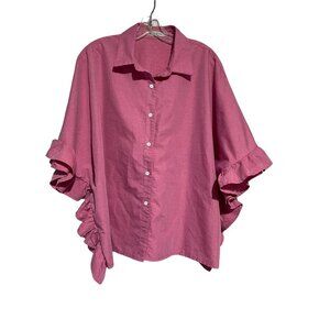 Miss Look Women's Top Blouse Button Down Blocked Ruffle Pink Size 2X
