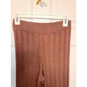 Miss Love Ribbed Knit Pants Brown Flare Leg Comfy Casual Size M Medium 0891