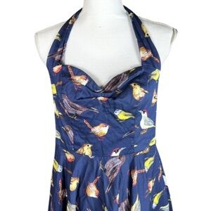 Miss Lulo Dress Womens Medium Halter Birds Retro Pinup Whimsical Quirky Girly