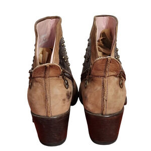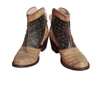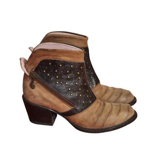 Miss Macie Piper Brown Tan Ribbed Leather Studded Dual Zip Cowgirl Boots