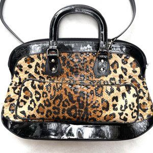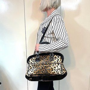 Miss Mak made in Canada Animal Print and Patent /Leather Tote/shoulder bag with Removable strap; Cool couture from Montreal, Canada.