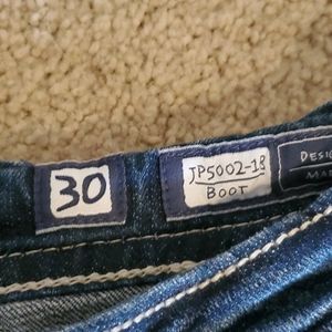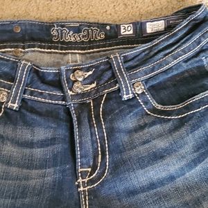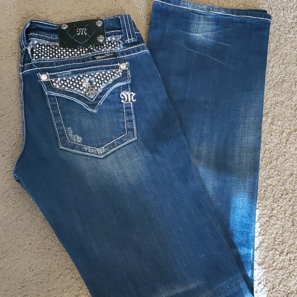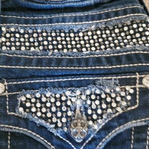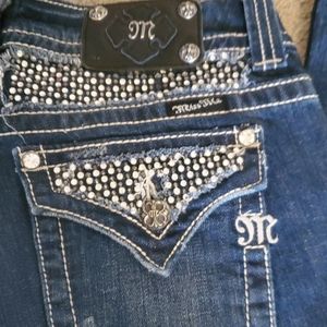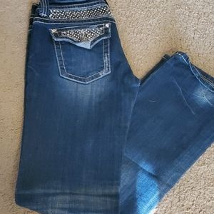 Miss me Jean's, missing few rhinestones to pockets. Can add few yourself if it bothers you. I hate selling my Jean's but all too big . My loss is your gain. Please see photos.