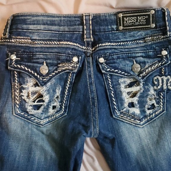 Very cute Miss Me Jeans size 27. Barely worn! Only distressing is at the bottom (shown in pictures).