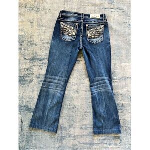 Miss Me Angel Wing Rhinestone Embroidered Pocket Chloe Bootcut Jeans 29" SHORT