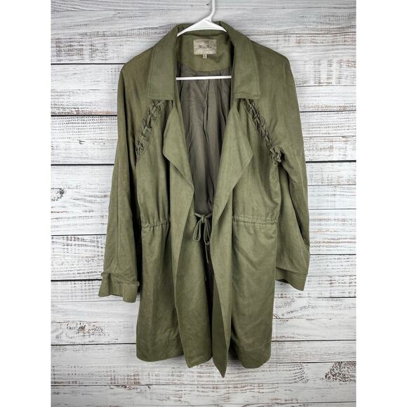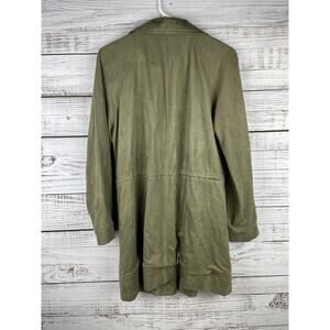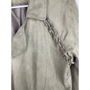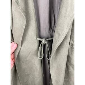 Miss Me Army Green Faux Suede Long Jacket Tie Front Boho Small Olive Utility