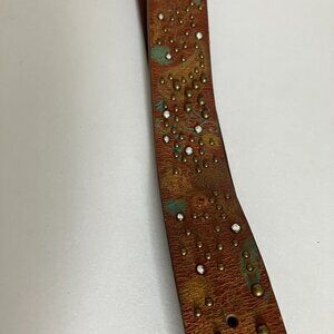 Miss Me Belt Size X Large Brown Leather Rhinestone Studded Buckle Belt Y2K. There are 2 flaws with this belt. The buckle is missing 2 Rhinestone and there was an extra hole added to the belt-please see pictures of both flaws. This belt is 48" long and 1.5" wide. Please ask questions prior to purchasing. Check out our closet for other great listings. Thank you.