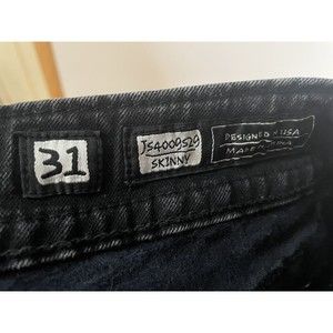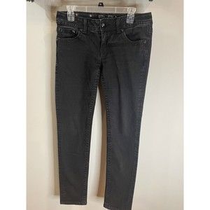 Introducing a stylish pair of black skinny jeans from the renowned brand Miss Me. These jeans come in a size 31 and feature a low-rise fit with a 32-inch inseam. The denim fabric has a medium wash and is a cotton blend material with a solid pattern.